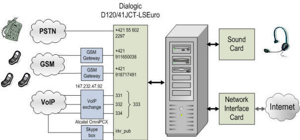 Audio server Audio server tvorí vstupno/výstupné rozhrania umožňujúci komunikáciu počítača s telekomunikačným prostredím. Hardvérová časť je realizovaná s využitím telefónnej karty INTEL DIALOGIC umožňujúca simultánne vytvorenie 4 telefónnych spojení. Toto rozhranie priamo spolupracuje s digitálnou ústredňou PABX, ktorá rozširuje možnosti pripojenia do iných typov telekomunikačných sietí a komunikáciu s ľubovoľným typom terminálu (PSTN, VoIP, mobilný telefón). Softvérová časť je kompatibilná s architektúrou IRKR a umožňuje priamu komunikáciu s blokmi syntézy reči a rozpoznávania reči. Softwarová časť Audio servera podporuje telefónne karty Intel Dialogic so "springware" architektúrou.